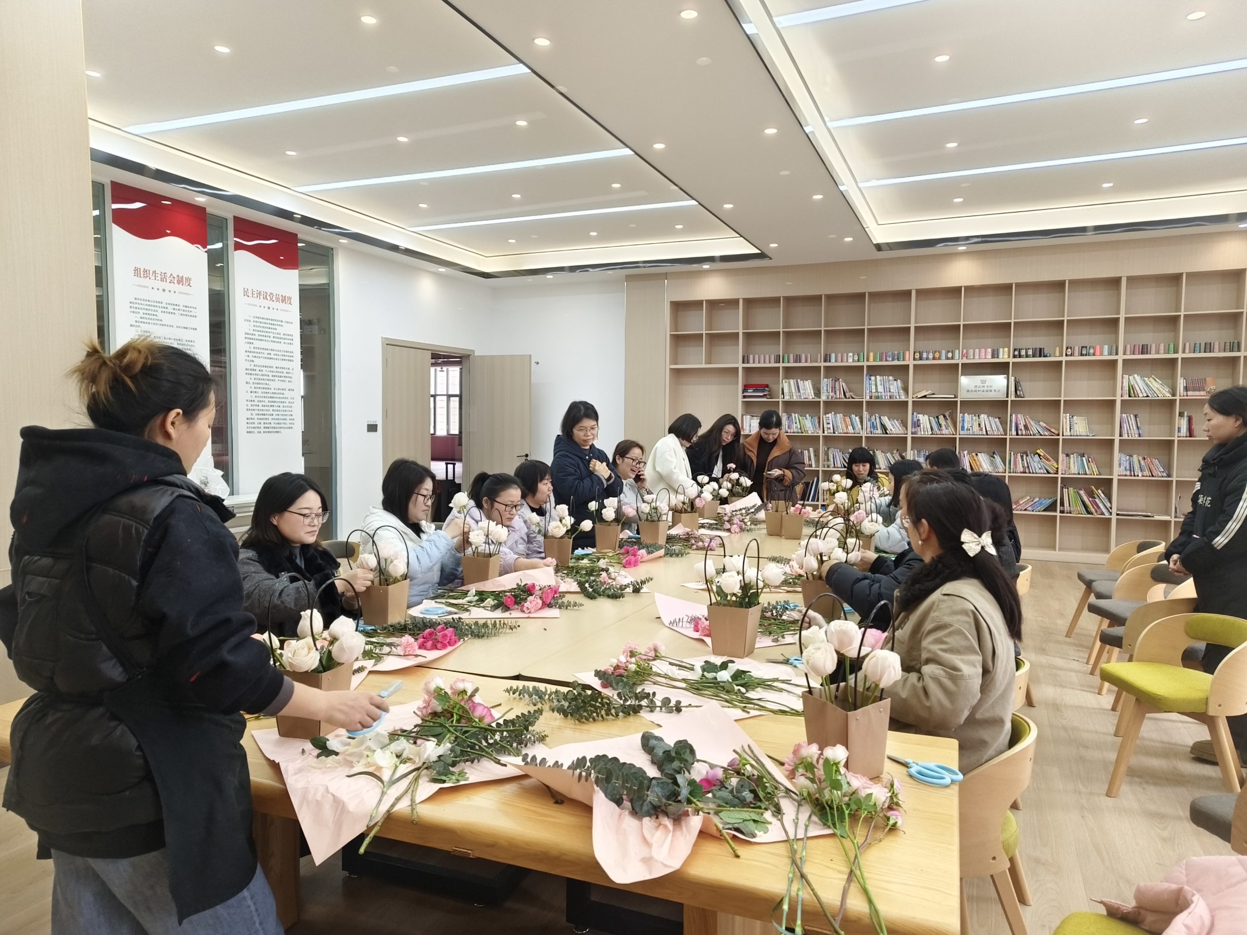 在老師的悉心指導下,女職工們化身 “花藝師”,手持花材精心構思。大家沉浸在創作的樂趣中,指尖輕捻花枝,將嬌艷的玫瑰、溫馨的康乃馨與清新的尤加利葉巧妙融合,打造出一個個錯落有致、層次分明的粉色系作品。從最初的手忙腳亂到后來的得心應手,每一個花籃都凝聚著大家的巧思與用心,承載著對生活的熱愛與對美好的向往。