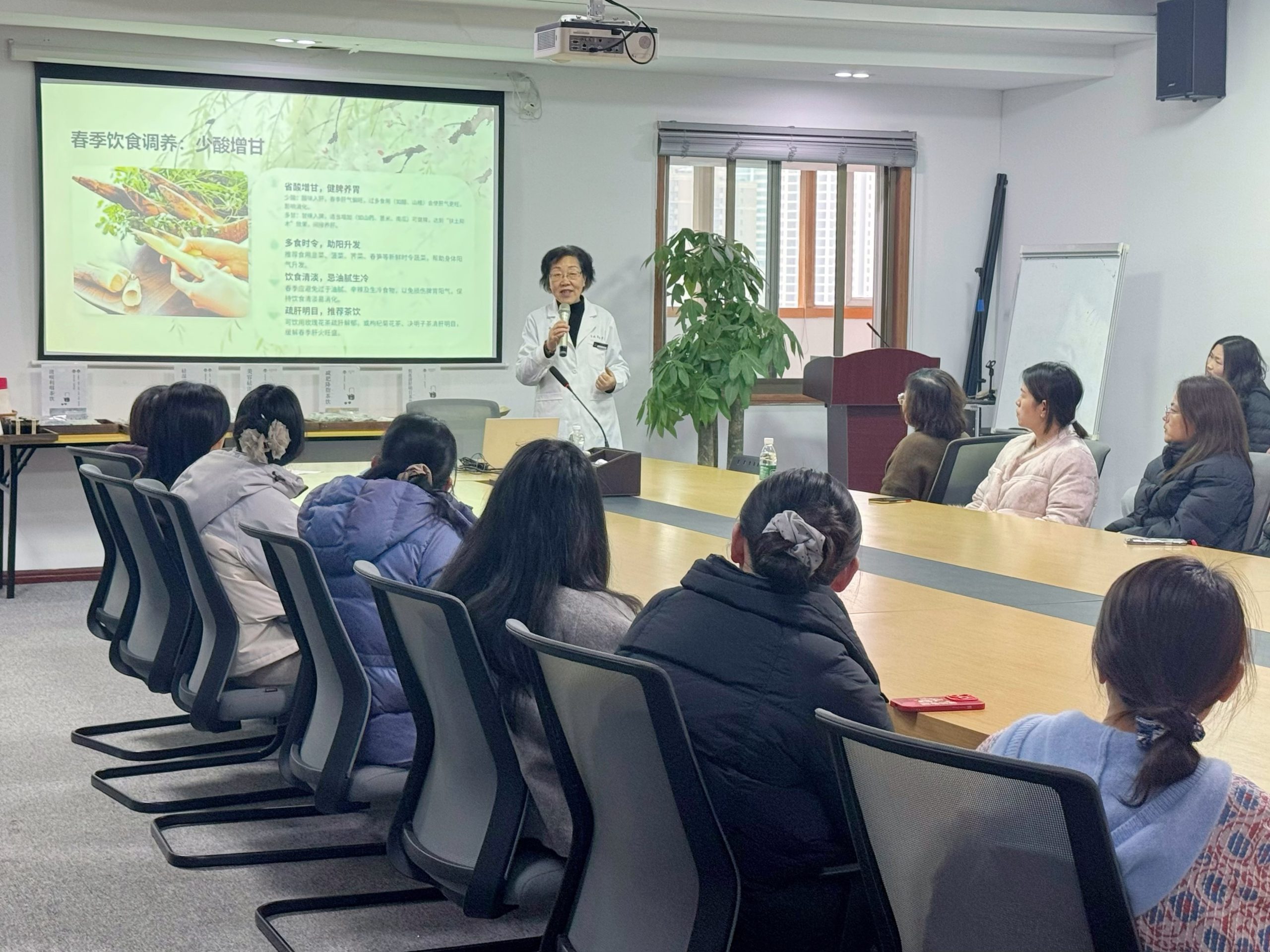 關照自己,從身開始。3月5日下午,我們特邀國醫堂主任醫師王淑芹為女同胞們帶來一場中醫春季養生沙龍。王主任圍繞順時養生的核心,從中醫基礎理論、傳統療法出發,講解了春季養肝為先的健康要點,涵蓋飲食、情志、運動及常見病預防,還分享了九種體質類型、特色茶飲配方及穴位調理方法,帶大家領略中醫智慧。