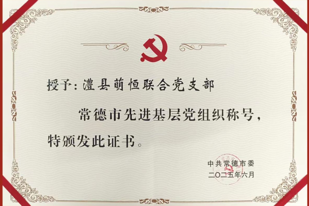 2025年7月9日澧縣萌恒聯合黨支部獲評常德市“先進基層黨組織”稱號